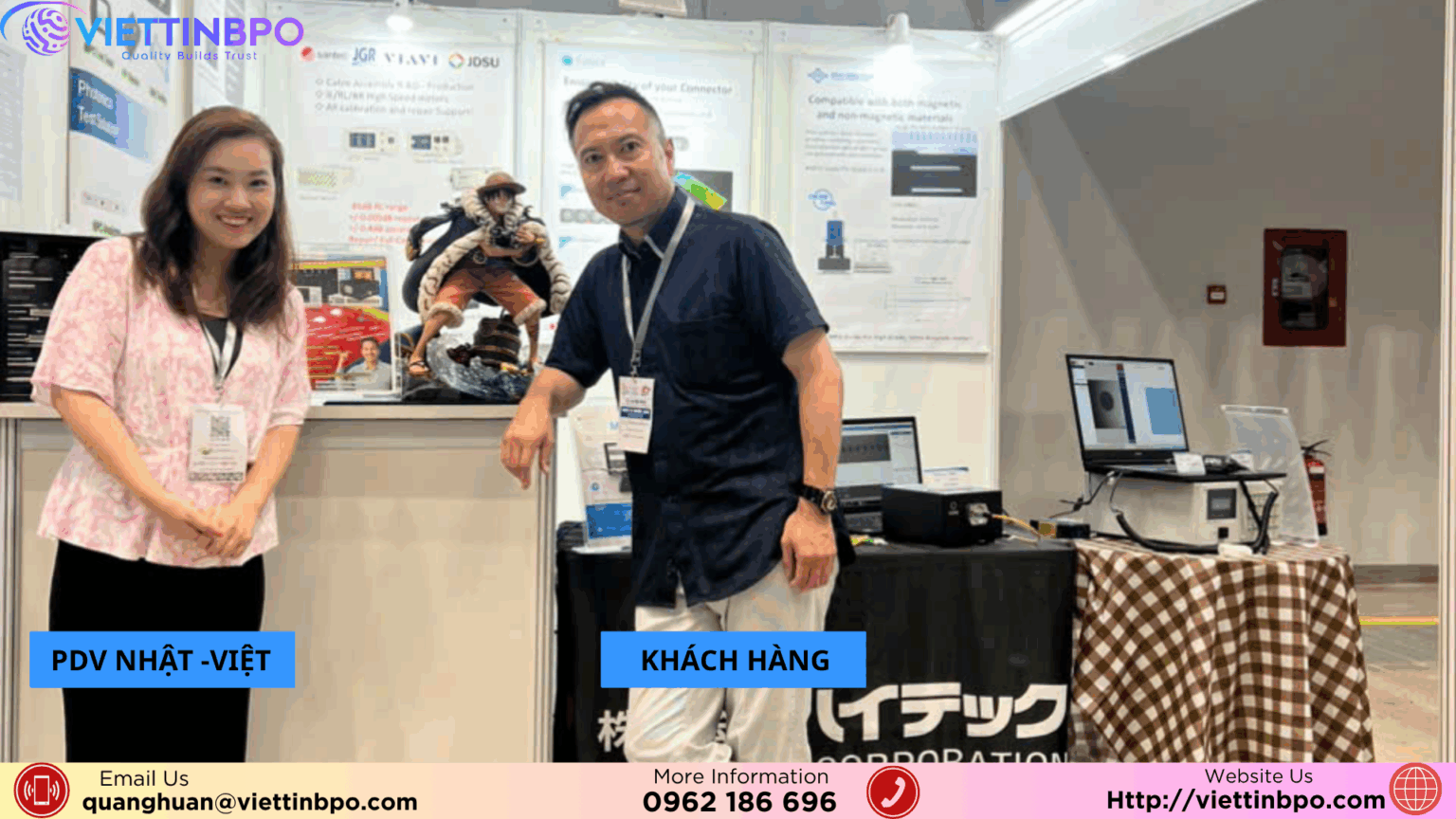 Việt Tín Global là công ty cung cấp giải pháp ngôn ngữ và BPO outsourcing hàng đầu Việt Nam. Với đội ngũ dịch thuật chuyên nghiệp và quy trình kiểm soát chất lượng chặt chẽ, chúng tôi cam kết mang đến dịch vụ phiên dịch Tiếng Nhật tại các hội chợ triểm lãm , nhanh chóng và phù hợp với từng thị trường.